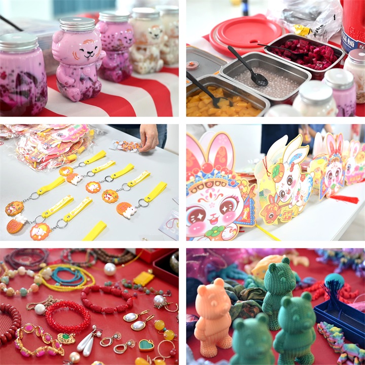“滋滋——”烤肠声里都是幸福的味道,“这个怎么卖?”一问一答间,手机一扫,心仪好物轻松到手。而最聚人气的还属套圈游戏!零食饮料在地上摆得整整齐齐,围观的小伙伴比参与的还激动——“给我五个圈!看我的!”有位家人瞄准目标,手腕轻巧一抛,圈圈稳稳套中,全场顿时欢呼一片!